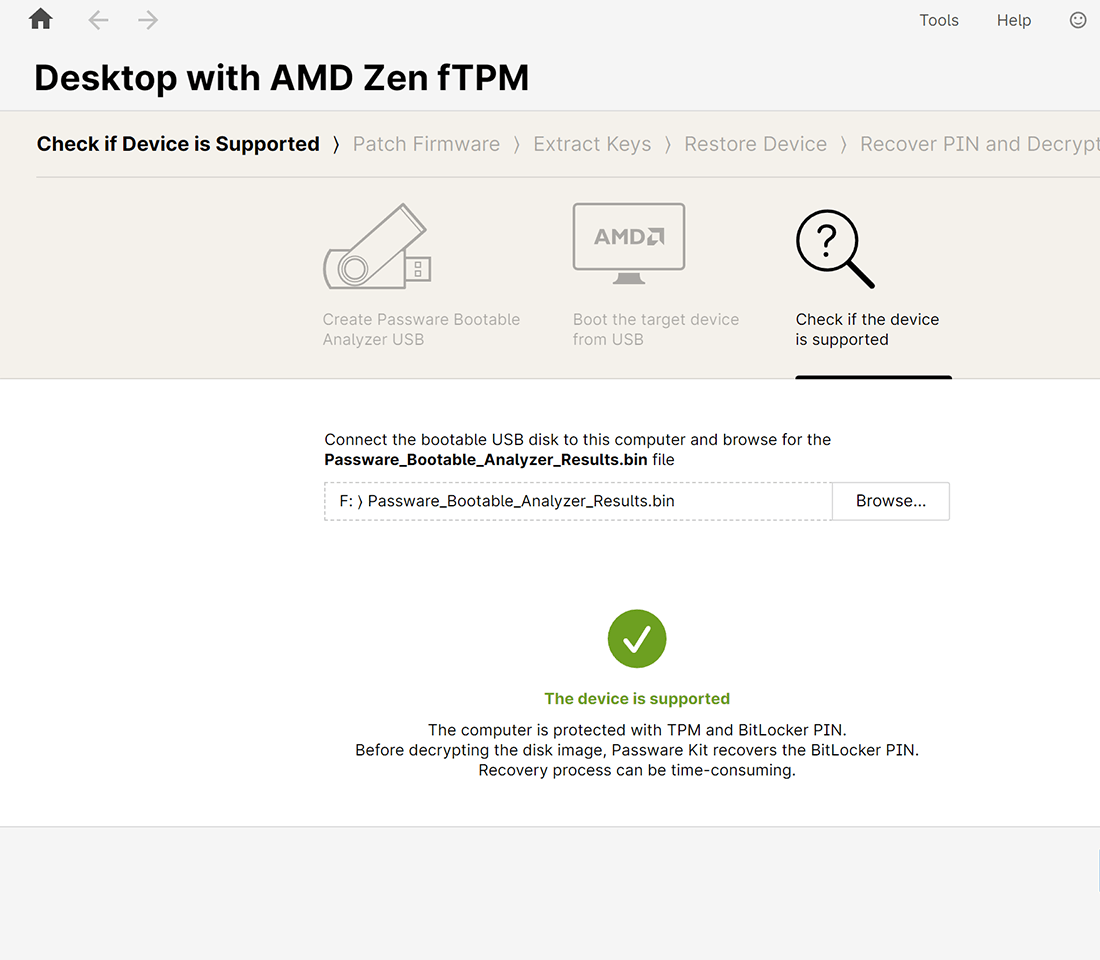 Decrypts BitLocker-protected devices with TPM or fTPM security chip, even when a PIN is set.